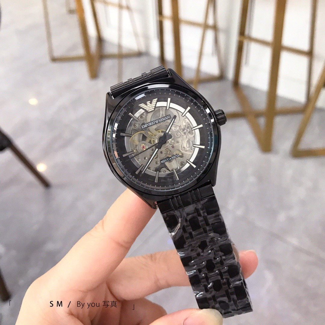 Armani's new model is booming 🔥🔥🔥 Men's fashionable mechanical wristwatch, featuring a hollowed out design and reinforced mineral glass mirror surface. Strap: high-strength solid steel strap with genuine leather strap, size: 40mm 🌹🌹🌹 The dynamic and dry white hollowed out dial, with a metallic texture that integrates humanities and art, is not only a symbol of status but also a fashion choice today 💘💘🔷 S m ✔