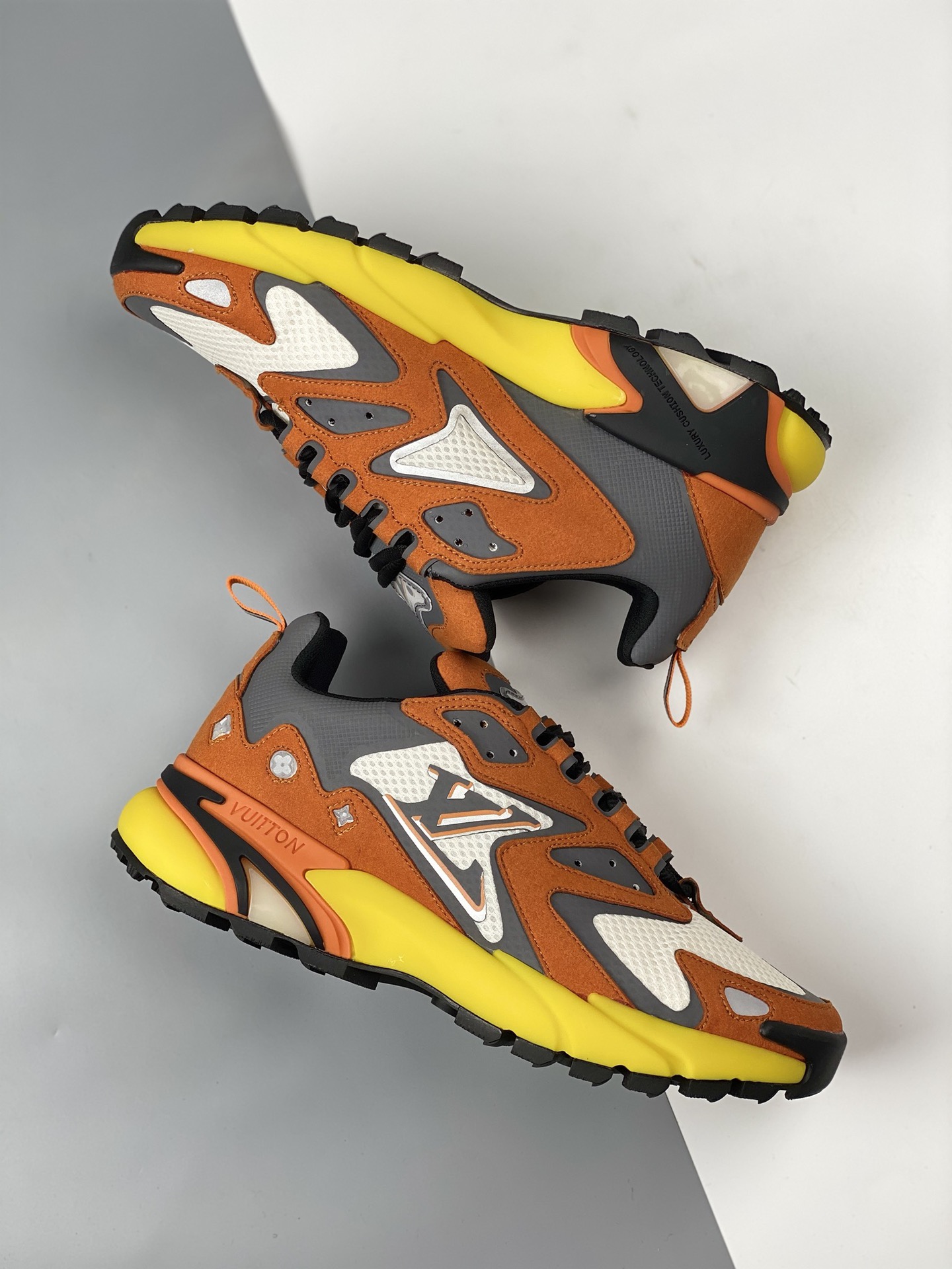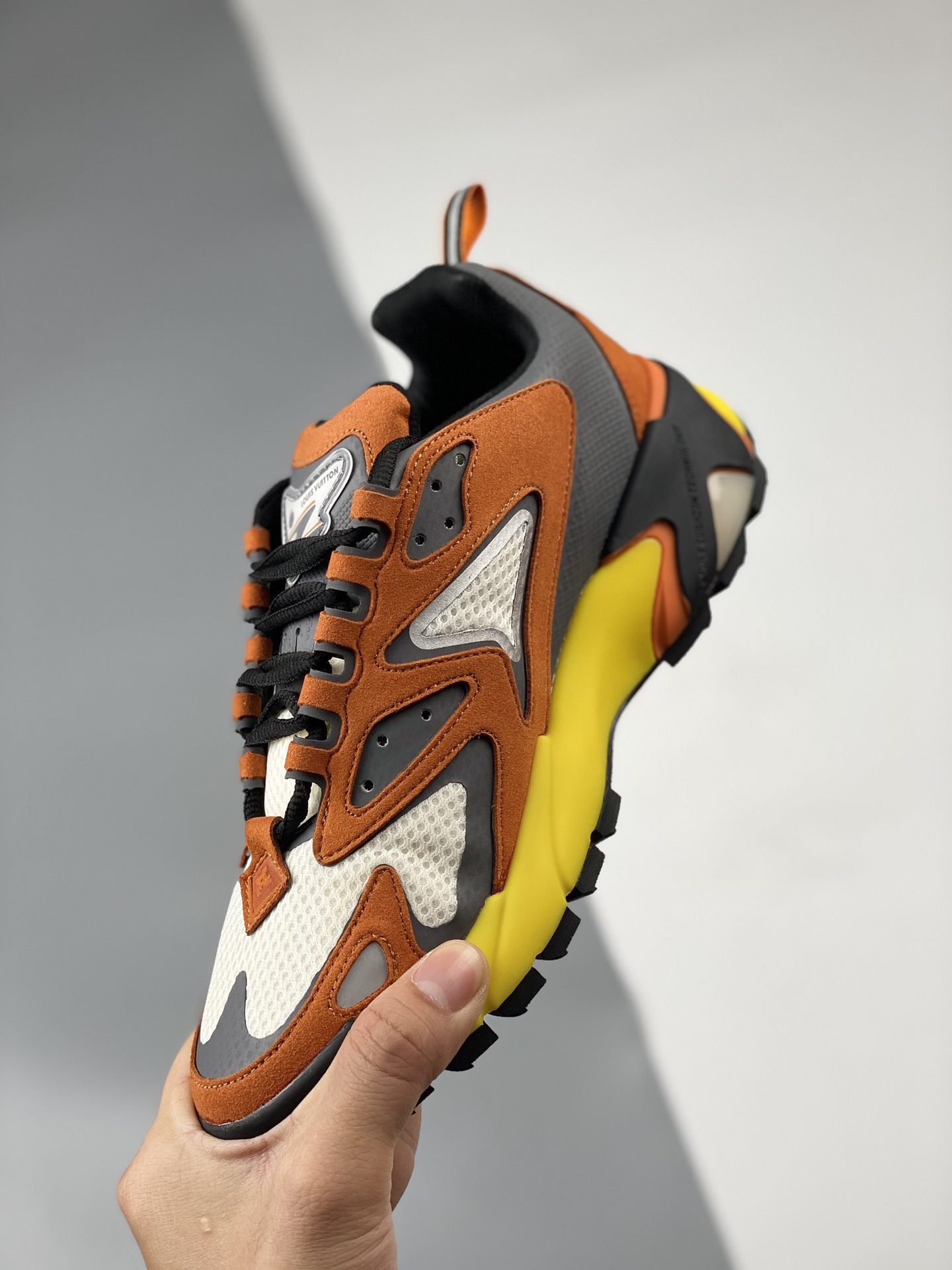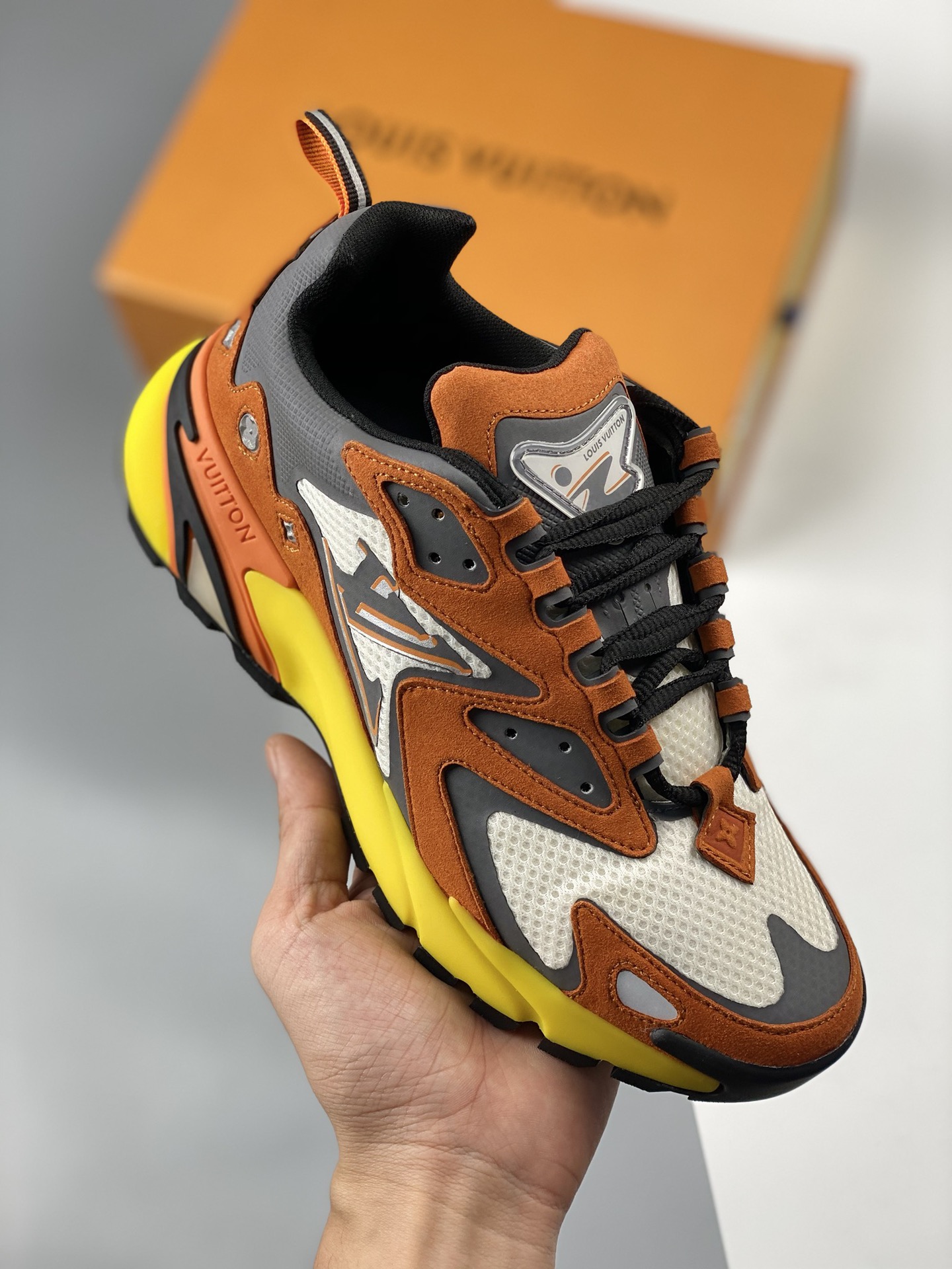 The lv runner static 2023ss series of sneakers Daddy shoes follow the popularity of the lv trainer Skate shoe at the same time, Mr. Virgil's another painstaking work Static has a mysterious and unpredictable feeling. Inspired by retro running shoes, it is also added to the future elements of Titan. The appearance of daddy shoes plus the design of damier grid monogram printed double-layer tongue, combined with the fabric patent leather and other multiple materials, this time spliced technology mesh fabric and cow leather, Presenting eye-catching colors, gradient lv letters, and reflective monogram flowers, highlighting one side of the vuitton logo. Residing outsole size: 35 36 37 38 39 40 41 42 43 44 45