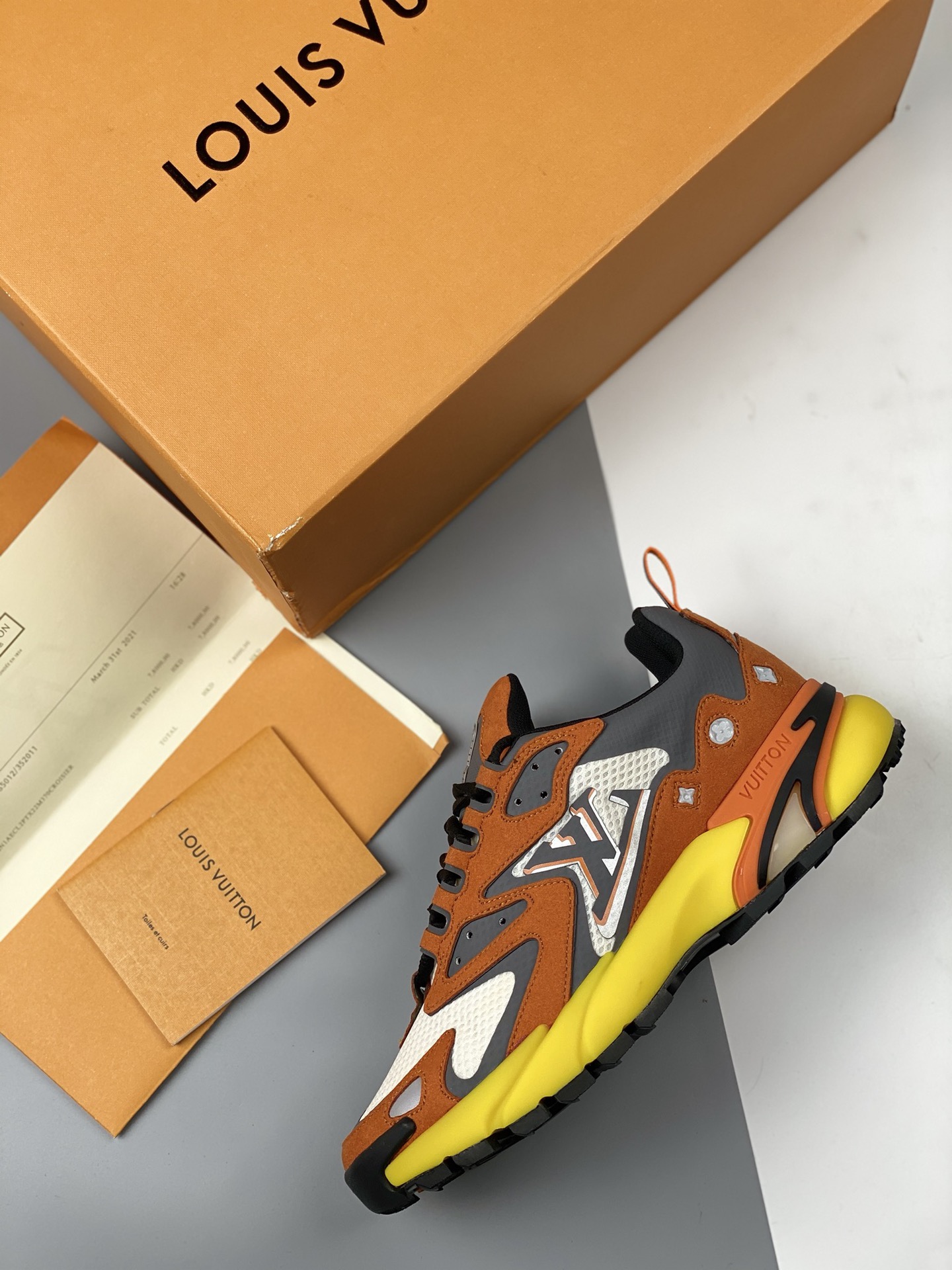 DetailThe lv runner static 2023ss series of sneakers Daddy shoes follow the popularity of the lv trainer Skate shoe at the same time, Mr. Virgil's another painstaking work Static has a mysterious and unpredictable feeling. Inspired by retro running shoes, it is also added to the future elements of Titan. The appearance of daddy shoes plus the design of damier grid monogram printed double-layer tongue, combined with the fabric patent leather and other multiple materials, this time spliced technology mesh fabric and cow leather, Presenting eye-catching colors, gradient lv letters, and reflective monogram flowers, highlighting one side of the vuitton logo. Residing outsole size: 35 36 37 38 39 40 41 42 43 44 45