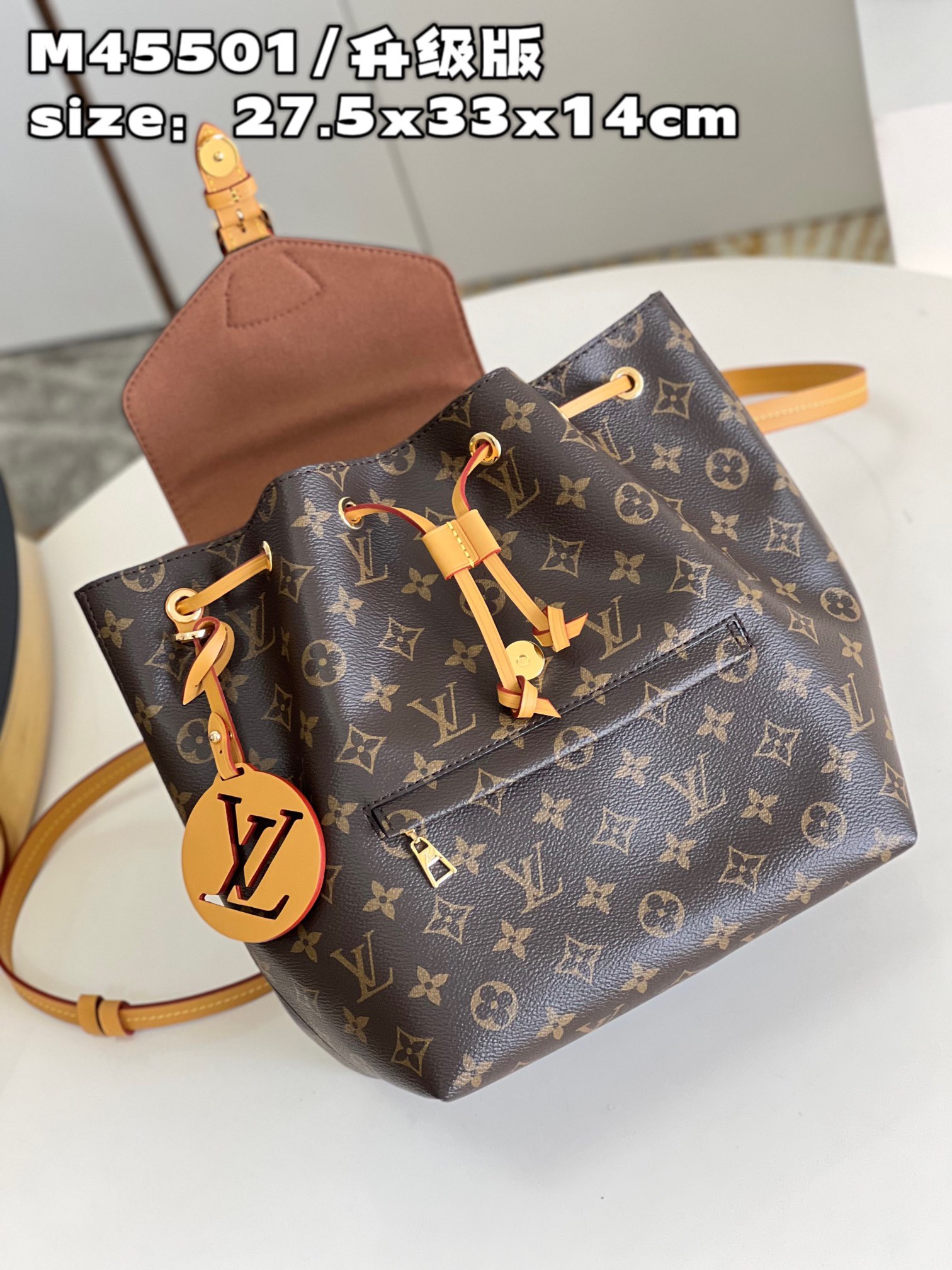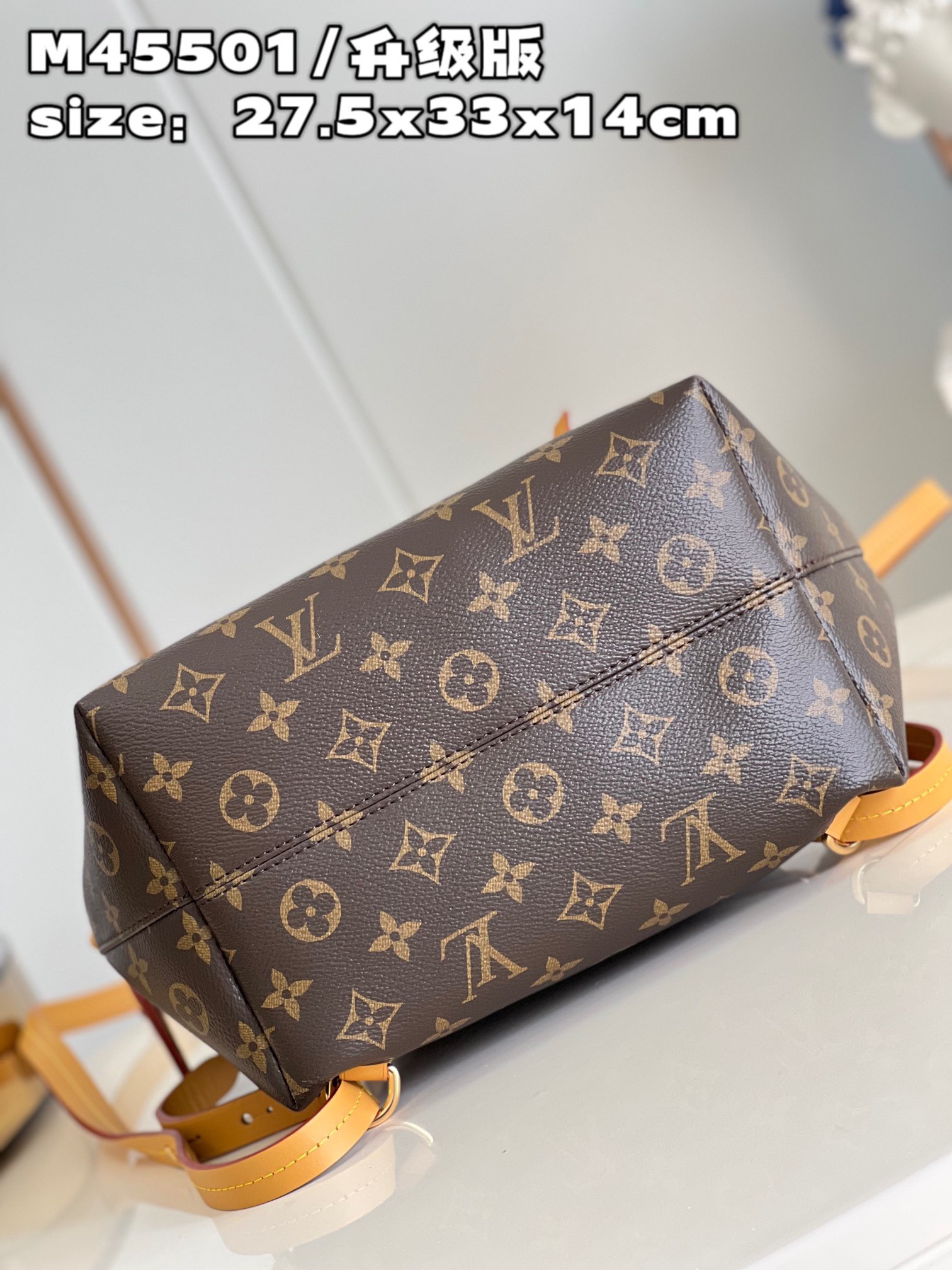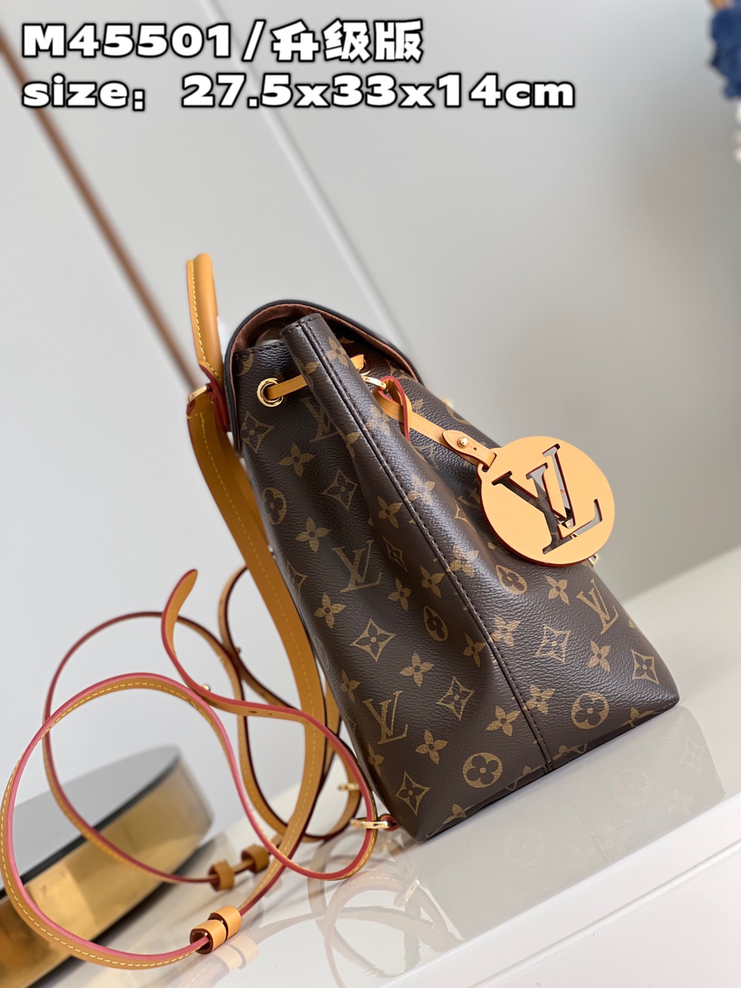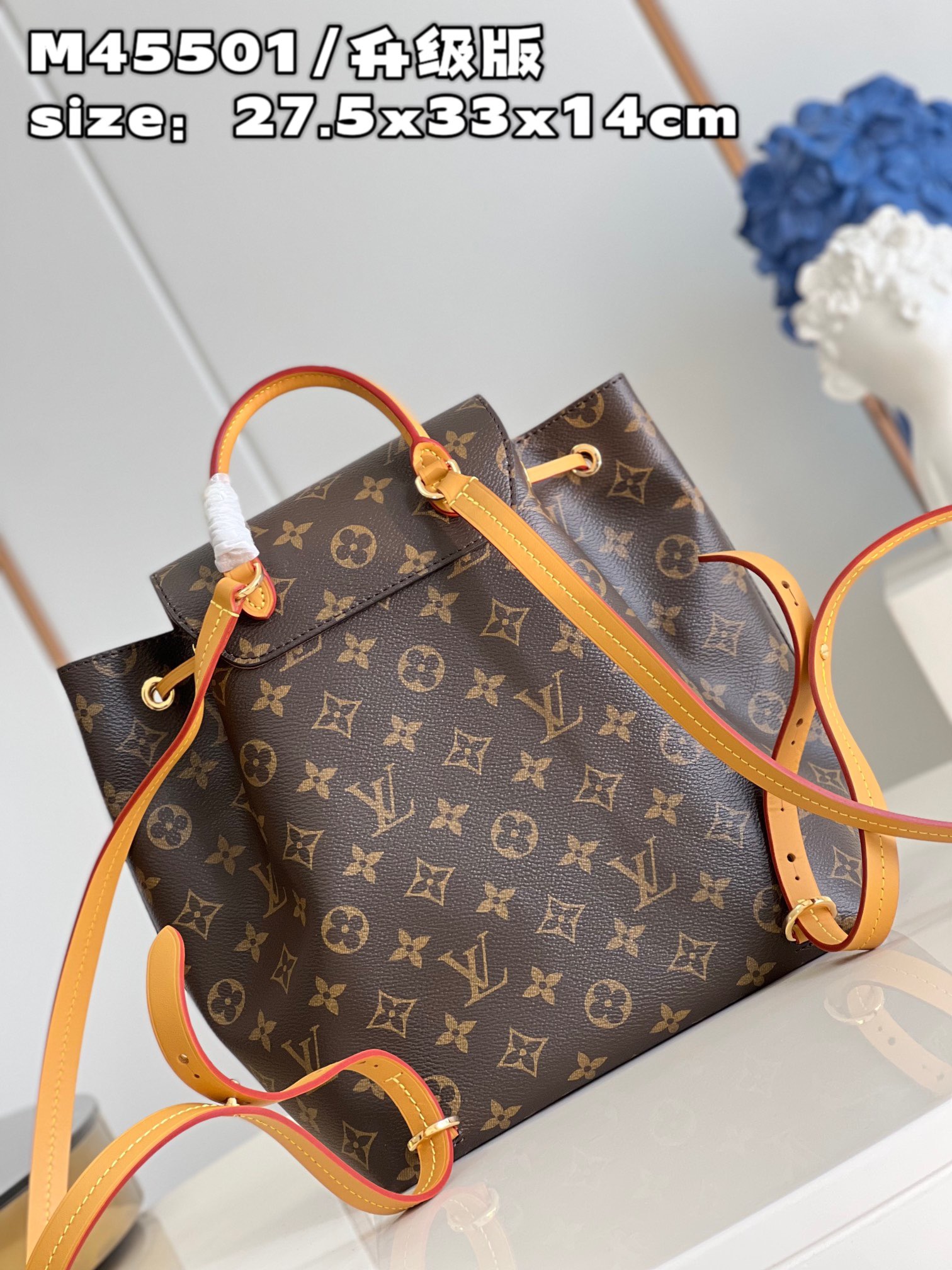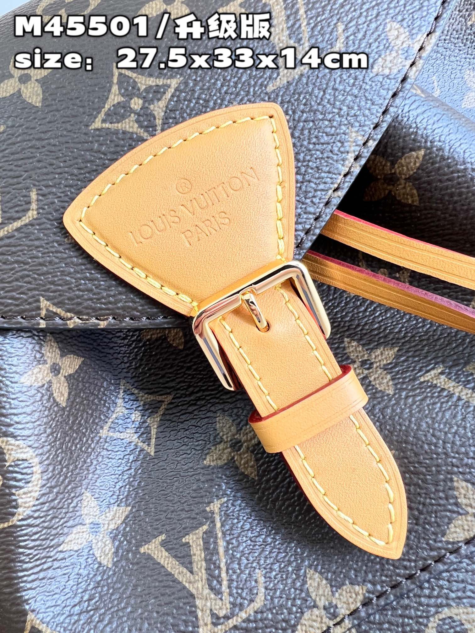 DetailP780 【 Exclusive live shot m45501 upgraded version 】 The new montsouris small backpack is made of Monogram canvas and cow leather, paired with buckle and leather drawstring from the brand's archives. Abundant internal space and zippered outer pocket add functionality, with a top handle and detachable and adjustable leather shoulder straps for multiple carrying methods. Detailed features 27.5 x 33 x 14 cm (length x height x width)