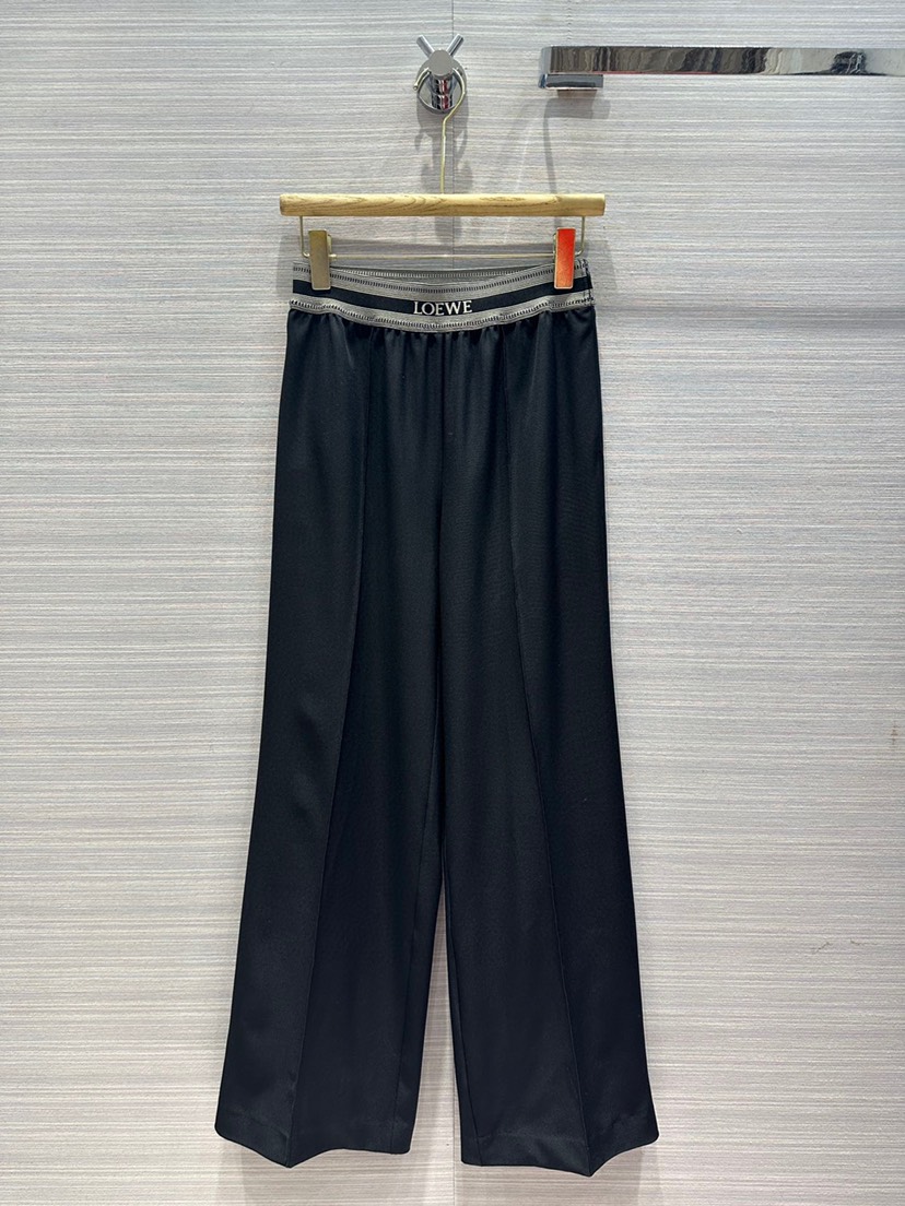 DetailExclusive Launch! Original quality ❤️ Lo * we23 Spring/Summer New Product! Hot selling wide leg straight leg pants at the counter! A must-have! Customized logo letter Roman woven waist! The imported blended suit fabric has an excellent drape feeling. Comfortable and effortless with casual temperament, unparalleled in touch! Elastic waistband with no binding feeling, wide leg pants with swinging legs! The upper body of the silhouette looks super thin! Close your eyes and enter the versatile yet handsome! Don't pick the giant long legged artifact Jue Jue Zi! Strongly recommend keeping your own money! Quality of workmanship depends on details! Spot delivery in seconds! One color S-L code. S size, waist elastic 64, hip circumference 96, pants length 105.